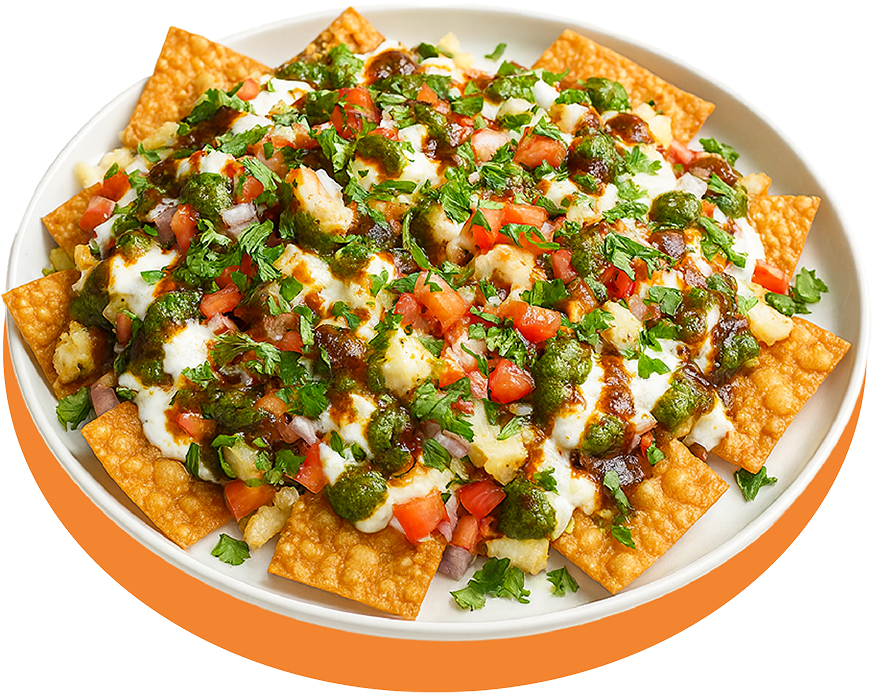Crispy Papri wafers layered with spiced potatoes, tangy chutneys, creamy yogurt, and fresh herbs. A street food classic bursting with flavor.