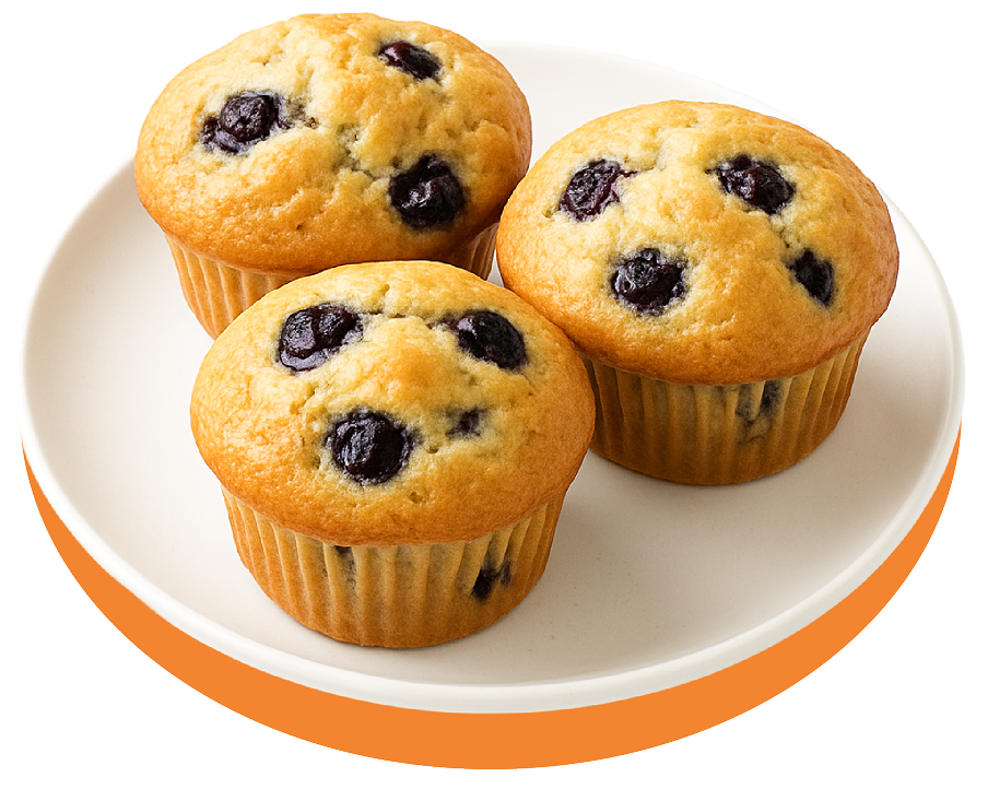 Soft, fluffy, and perfectly golden. Freshly baked muffins with a warm, buttery crumb and a lightly crisp top. Ideal for breakfast, tea time, or a sweet treat any time of the day.