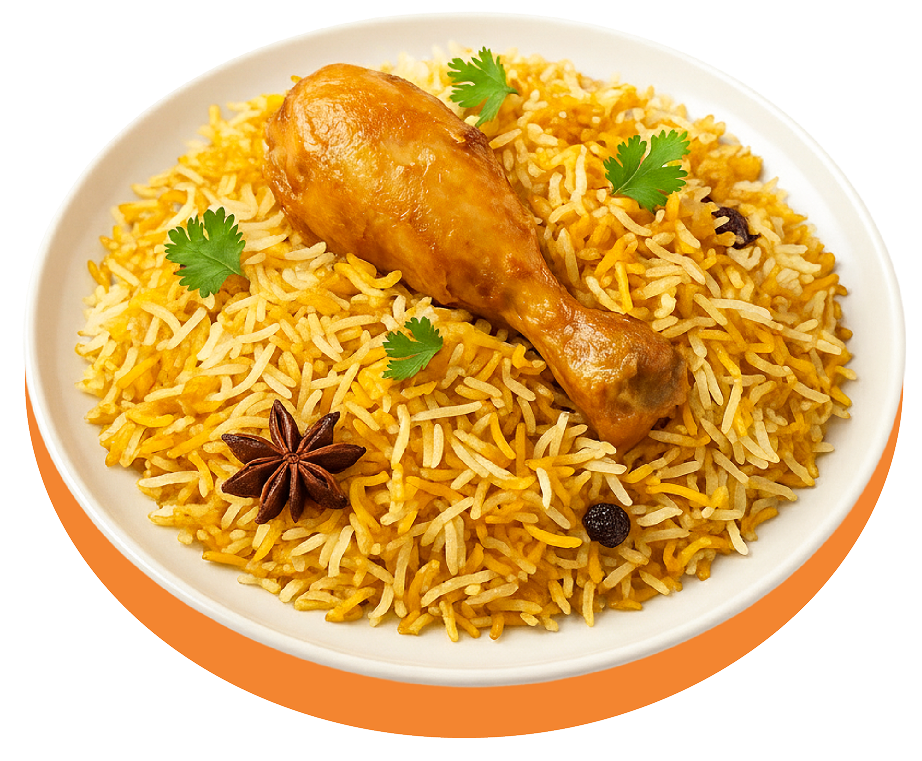Long-grain basmati rice layered with tender chicken, aromatic spices and fresh herbs. A classic comfort dish that brings warmth, richness, and irresistible aroma to every bite.
