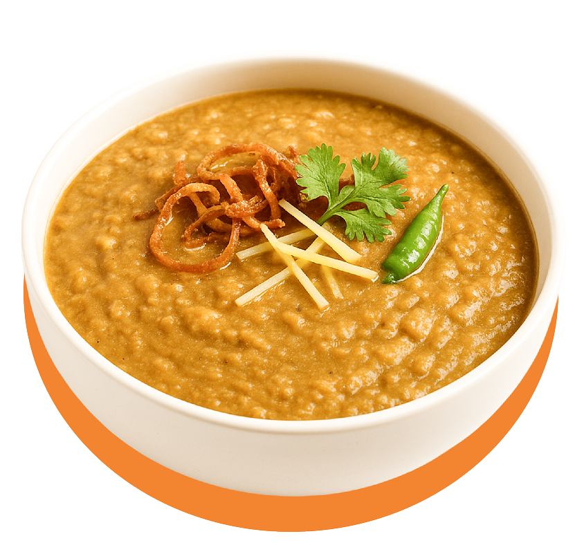 Slow-cooked wheat, lentils, and tender meat blended into a smooth, hearty bowl. Finished with fried onions, fresh herbs, ginger, and green chili for a warm, traditional flavor.